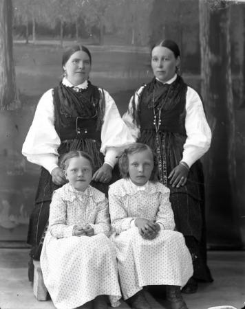 | Hinds Hilja, Tjöck 1920. Två kvinnor, två barn, folkdräkter | 1920 |