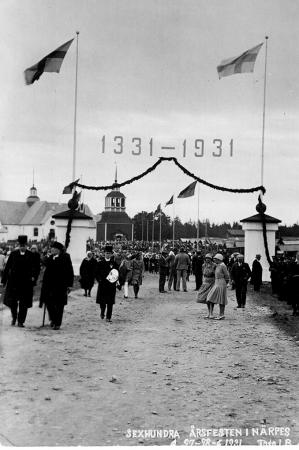 Närpesbor samlas på kyrkbacken inför firandet av sexhundraårsfesten (1331-1931). Året är 1931 Online