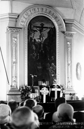 Prosten Nordlund tillsammans med en kollega håller en förbön i Närpes kyrka. Online