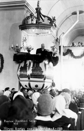 Prosten Nordlund talar i Närpes kyrka på 600-årsfesten för Närpes socken. online