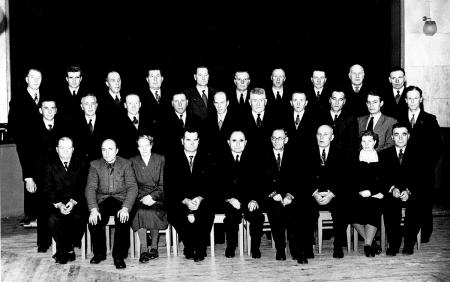 Närpes kommunfullmäktige från år 1953 har samlats på bild. online