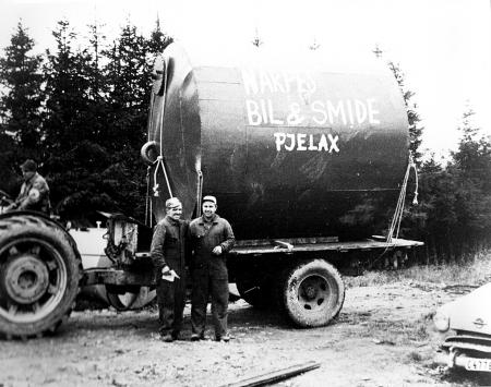 Oljetank tillverkad i av Närpes Bil & Smide i Pjelax. Gubbarna på bilden heter Karl Hannus, Nils Kalberg och Rosenback. online