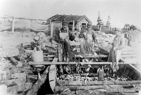 Fiskare från södra fiskeläget på Hamnskär med huset "Kolumbus". Fr.v. Oskar Ellfolk, John Sörhannus och Petter Sjögren. En god fångst på 100 fjärding strömming kunde skakas ur fiskebragderna. online
