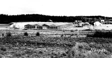 Georg Lassfolks (1901 - 1979) växthus syns på bilden. Han var pionjär för odling av tomater i Närpes och kallades allmänt för tomatkungen. online