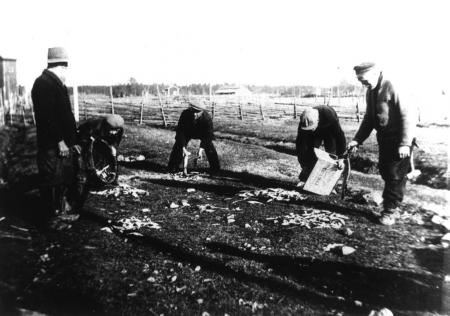 Fiskdelning vid Storträskbäckens Fattigbössa. Fiskfångsten delas mellan fiskarna genom lottdragning. online